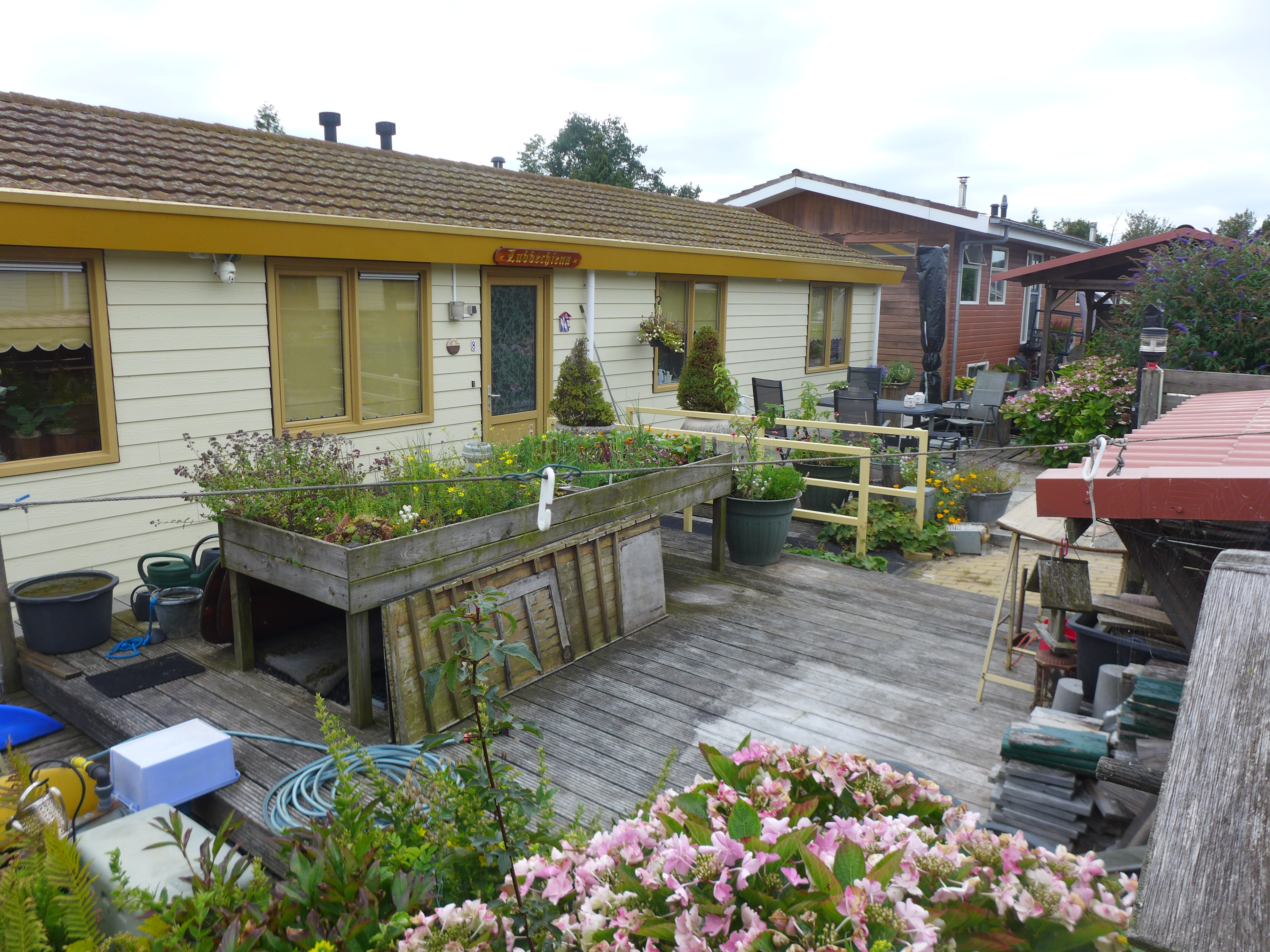 In einem kleinen Hafen unweit vom großen Jachthafen liegen zwölf Hausboote. Von Land aus sehen sie aus wie ganz normale einstöckige Häuser.
