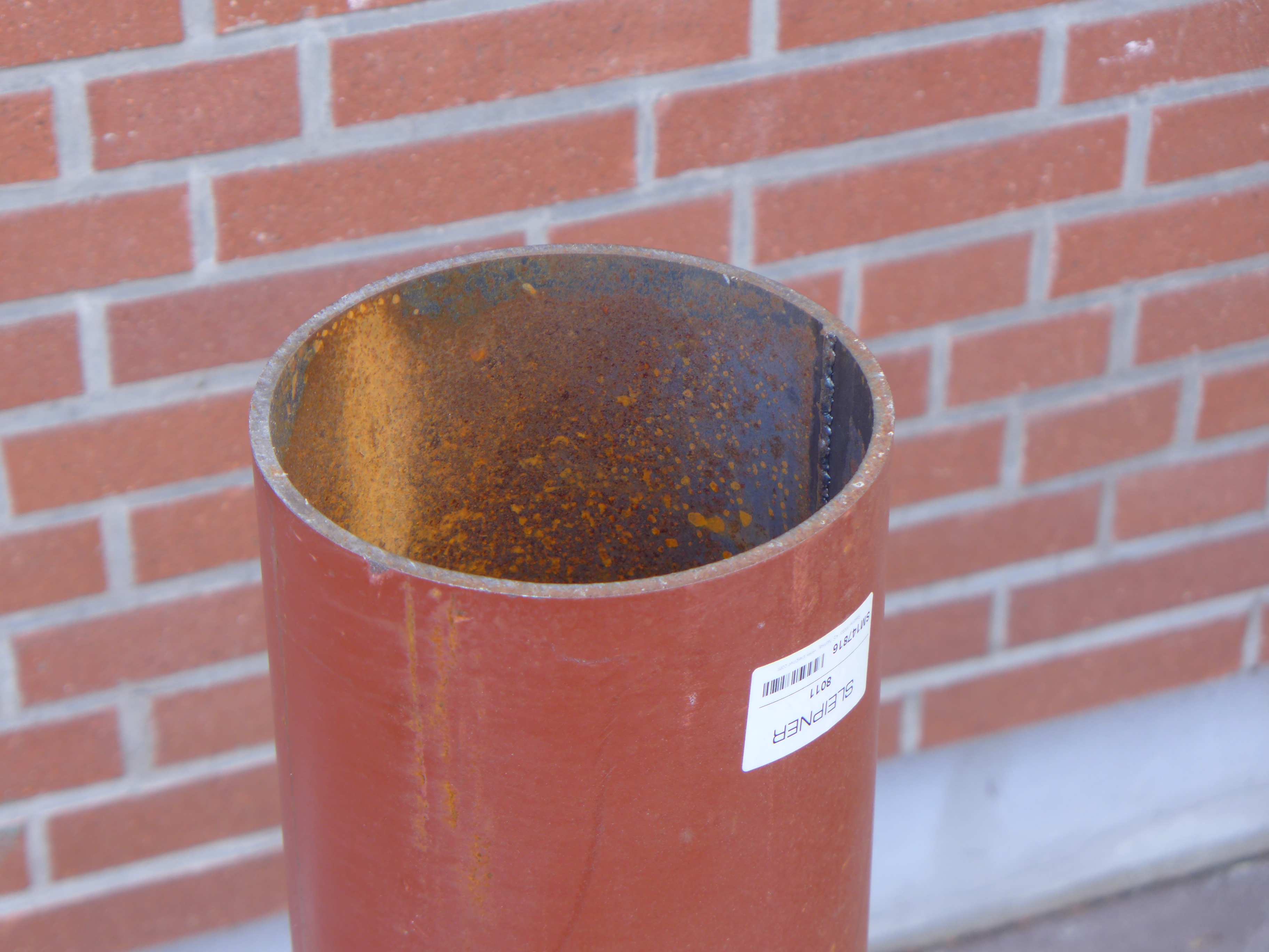 Innen finden sich Anrostungen und vor allem eine dicke Schweißnaht, die mit der Schraube kollidieren würde.