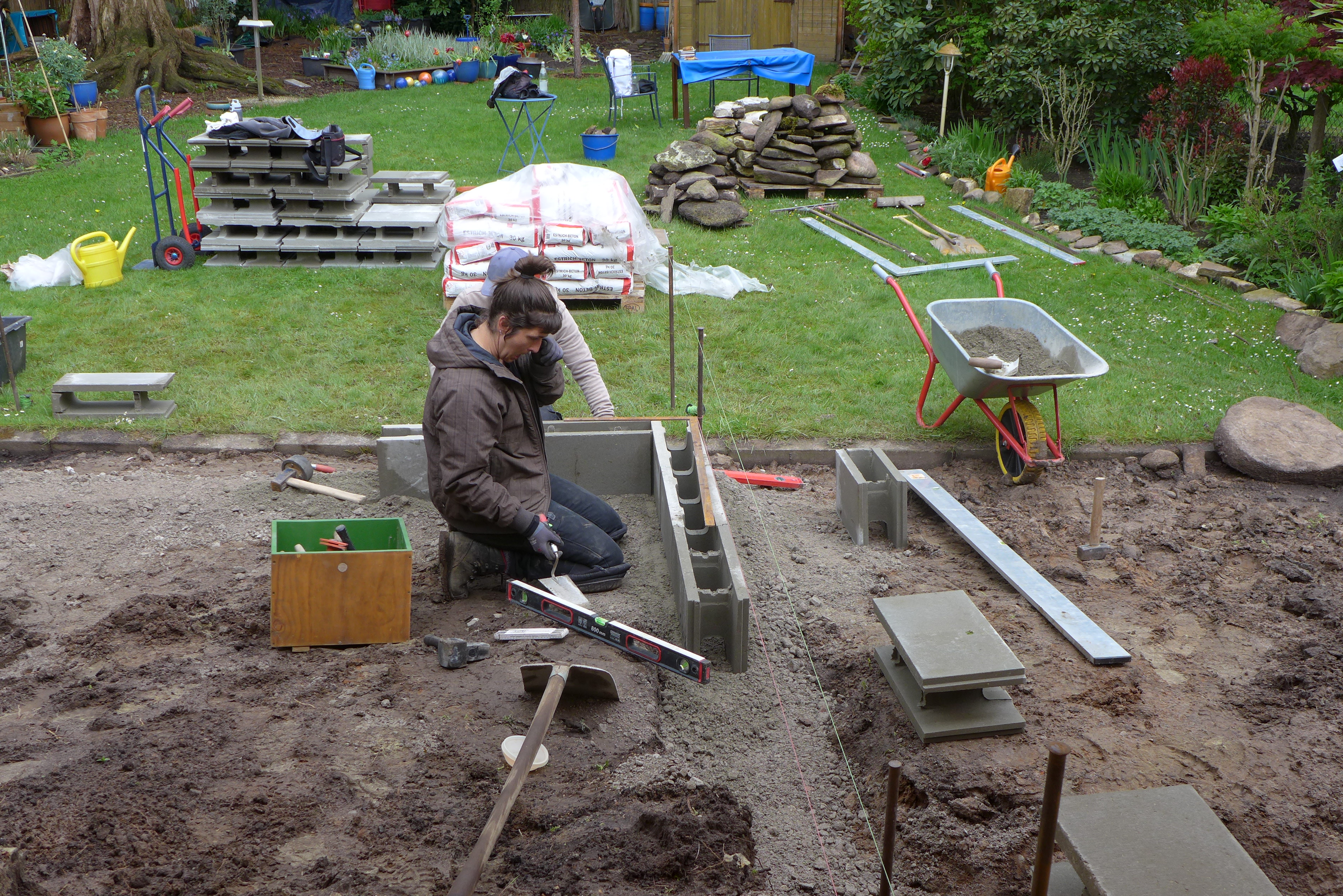 Die ersten Schalungssteine werden gesetzt, und es wird viel gemessen. Heute wissen wir: wer misst, misst Mist.