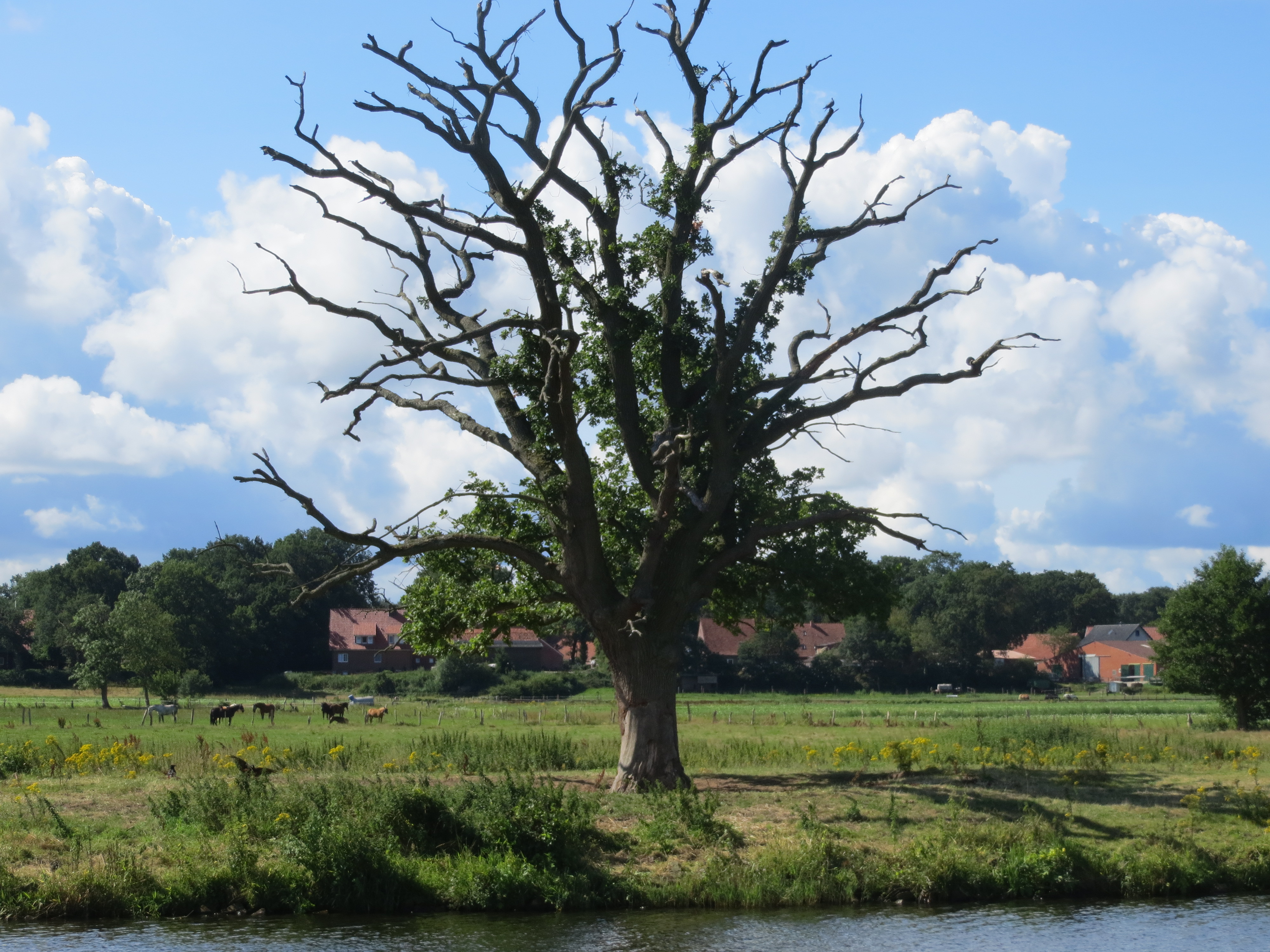 Am Emsufer haben wir einige Bäume wie diesen gesehen, die zum größten Teil abgestorben waren.