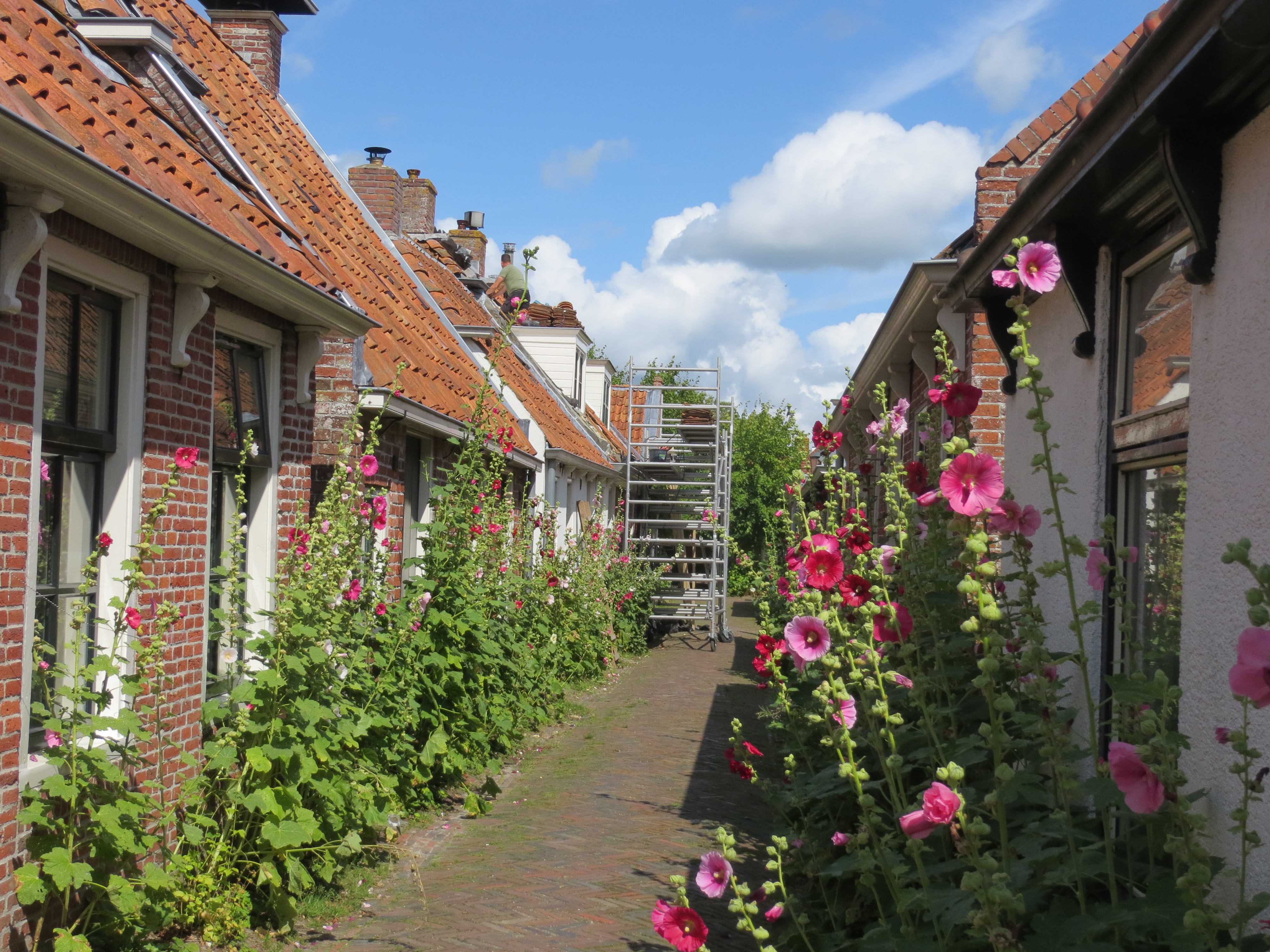 Anders als in Ostfriesland sind hier die Häuser liebevoll dekoriert. In dieser Gasse stehen vor jedem Haus Stockrosen.