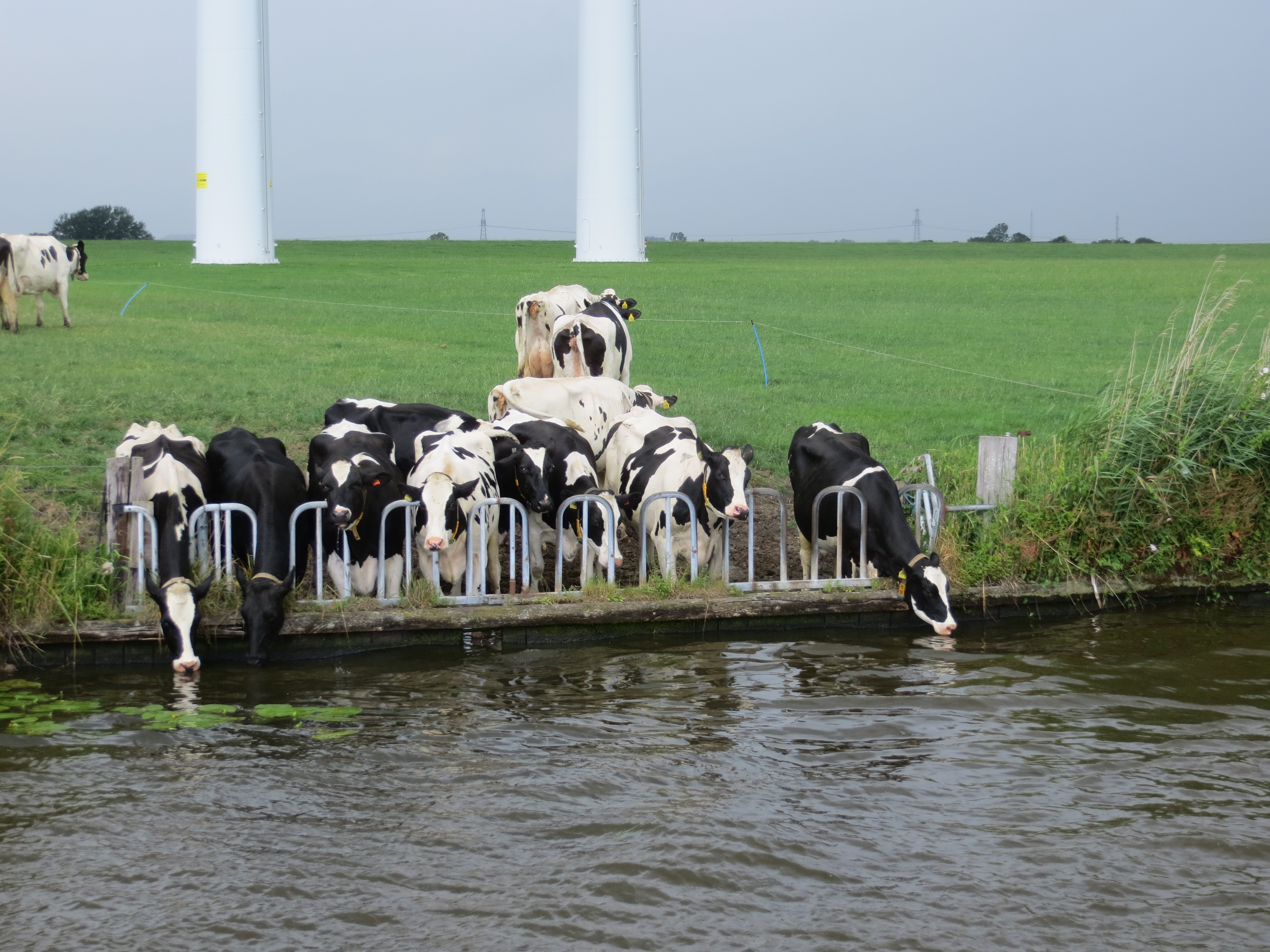 Wir kommen regelmäßig an riesigen Wiesen mit Hunderten von Kühen vorbei. Hier hat der Bauer eine Gitterkonstruktion angebracht, damit sich die Tiere nicht gegenseitig ins Wasser schubsen können.