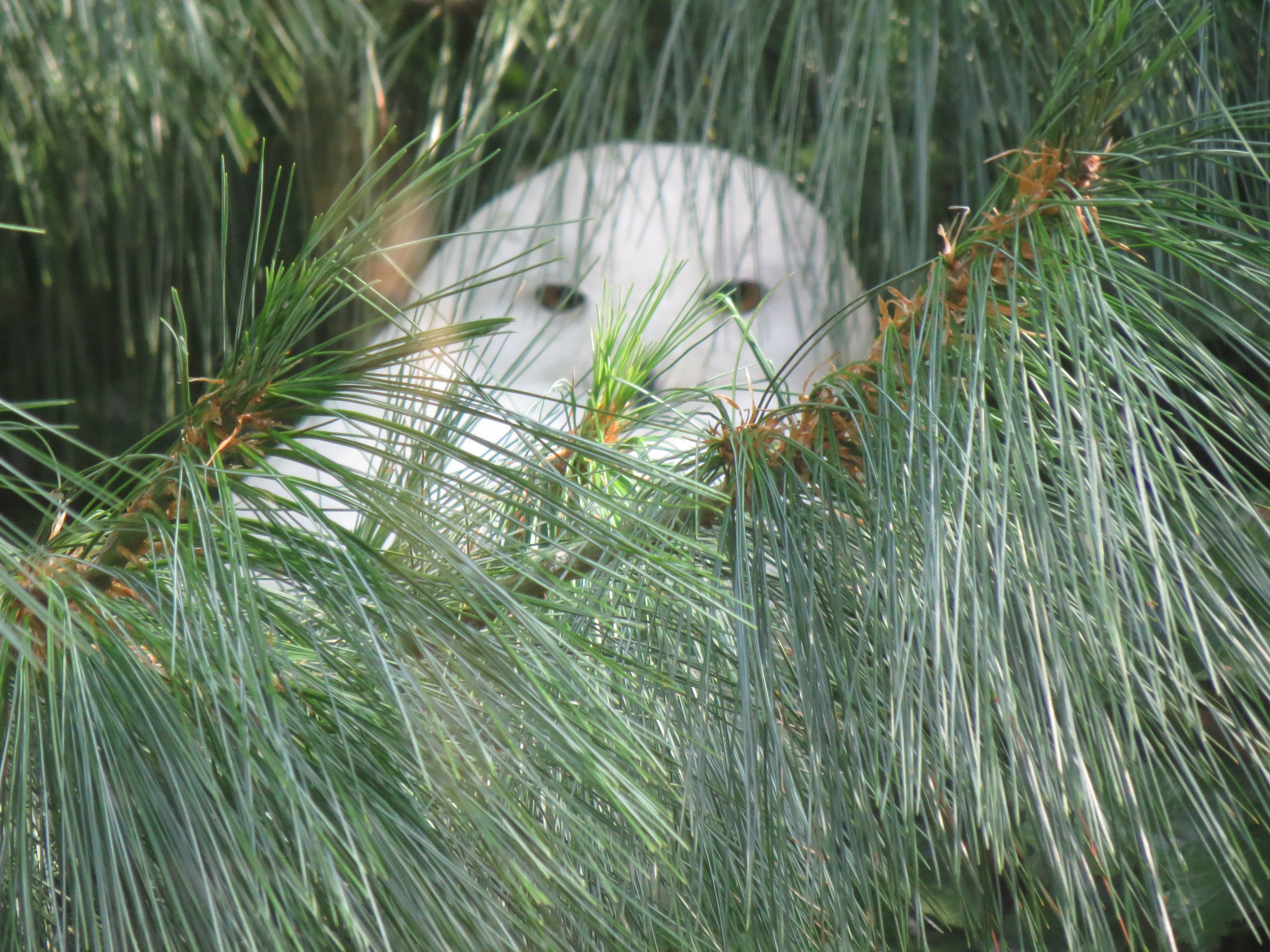Die Schneeeule ist ein nachtaktiver Raubvogel und versteckt sich tagsüber gern. Ricci hat lange suchen müssen, bis sie die Eule hinter einer Kiefer entdeckt hat.