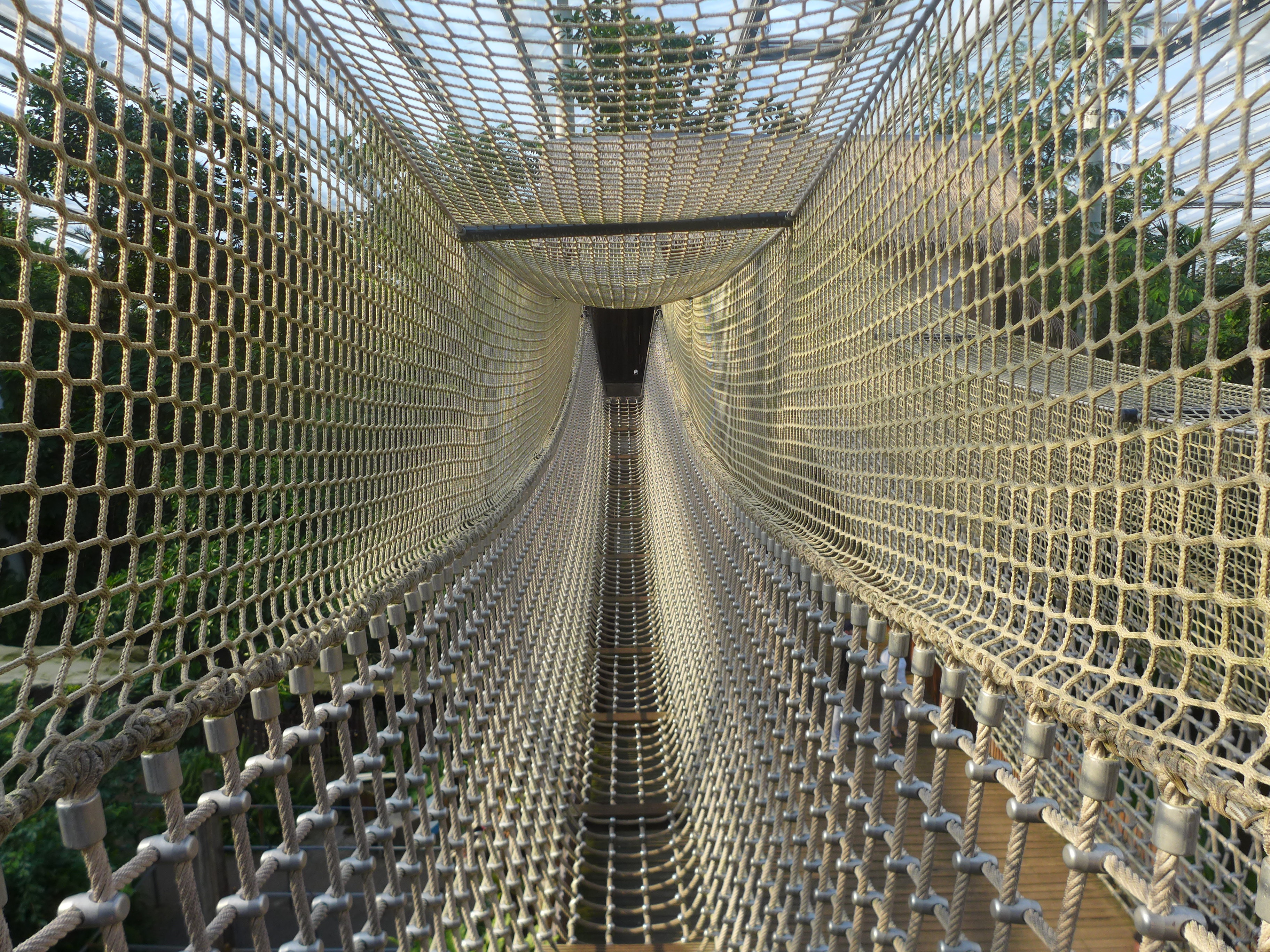 So sieht es in den Seilbrücken aus. Es ist völlig unmöglich, da hinauszufallen.