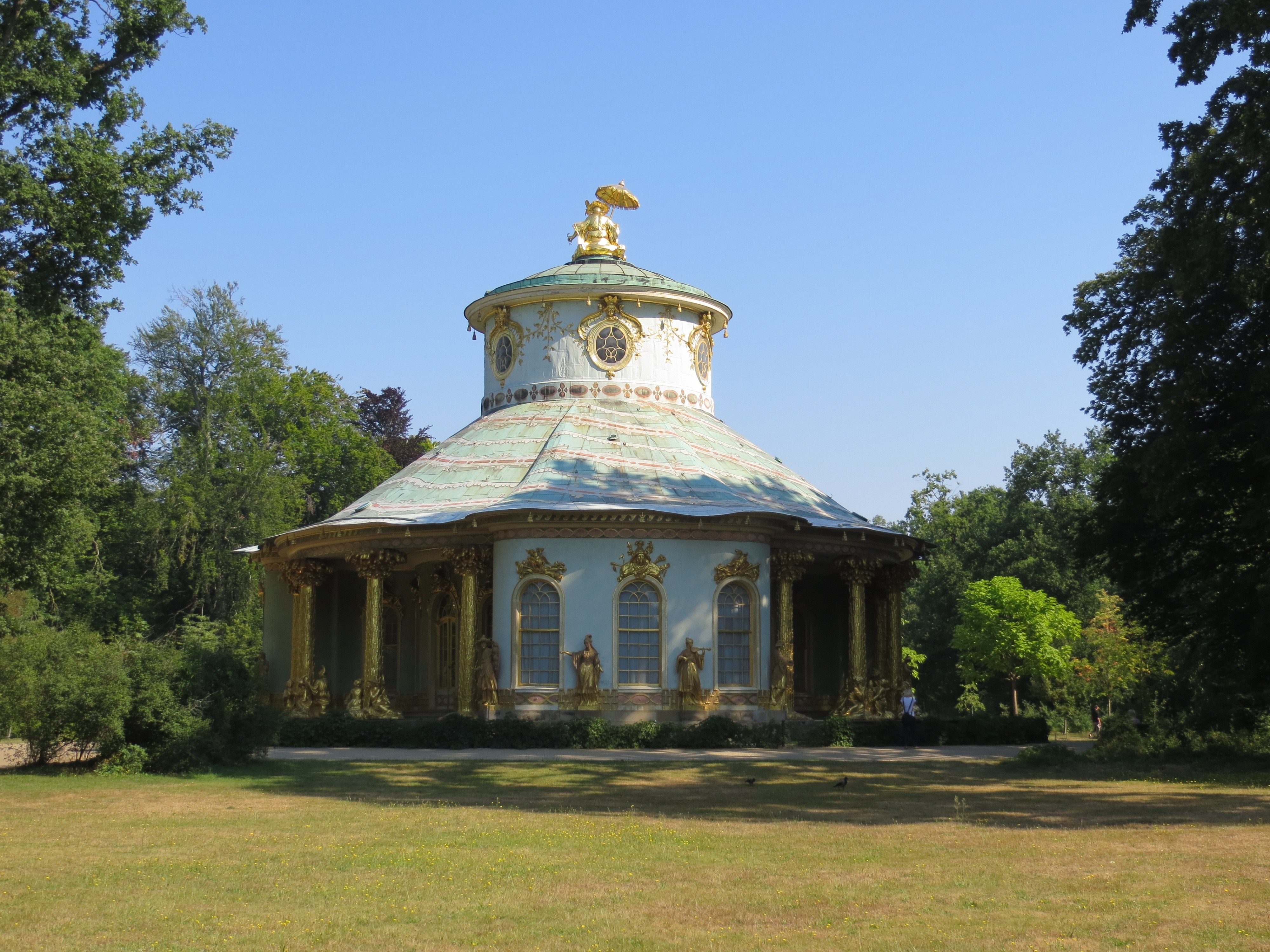 Das Chinesische Haus ist ein Gartenpavillon. Es wurde 1755 bis 1764 nach Skizzen des Königs im Zeitgeschmack der Chinoiserie gebaut in einer Mischung von ornamentalen Stilelementen des Rokokos und Teilen ostasiatischer Bauformen.
