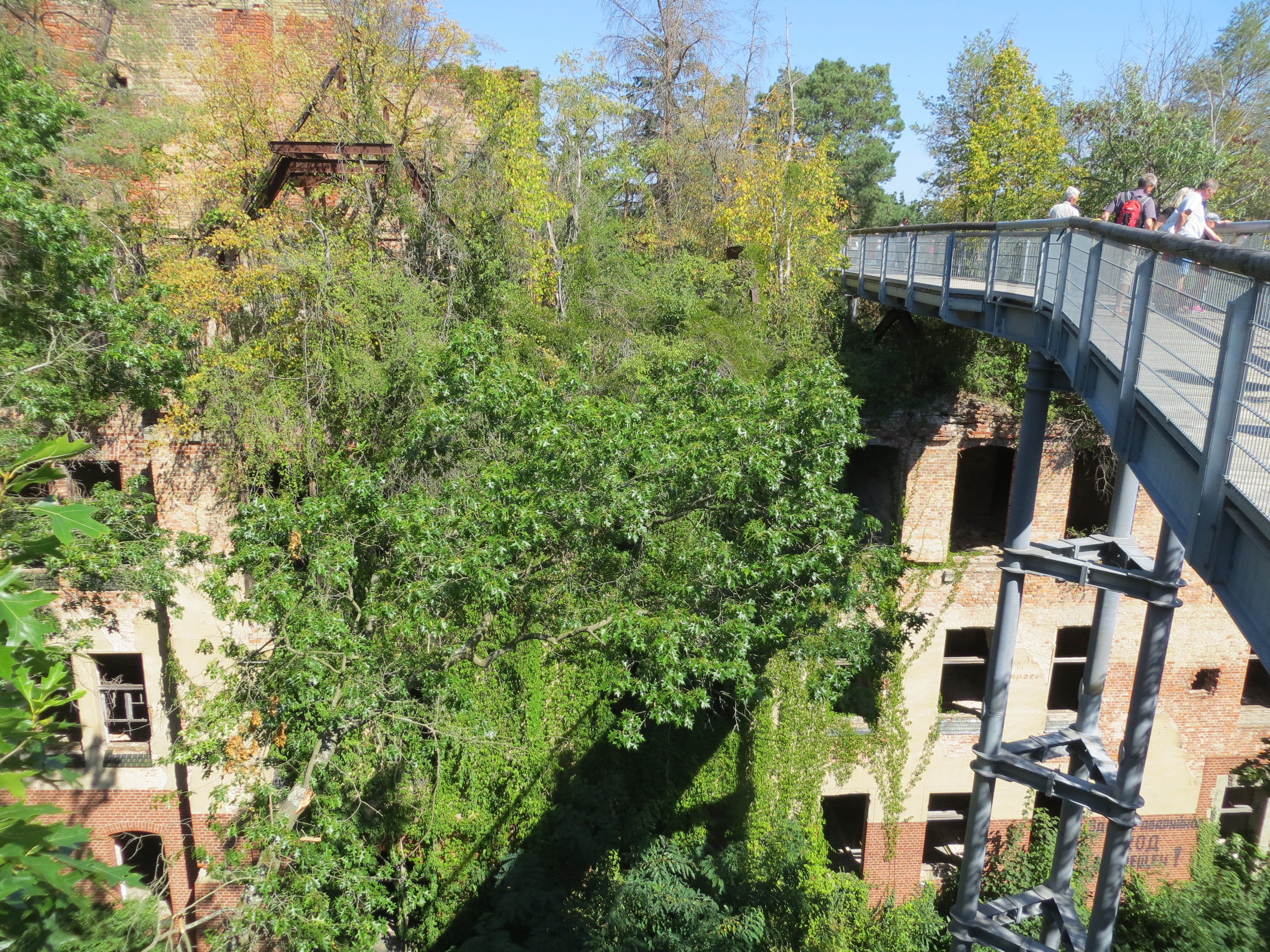 Ein Investor hat das Alpenhaus und einige weitere Gebäude gekauft und einen Pfad als Stahlkonstruktion bauen lassen, der den Blick aus 20m Höhe erlaubt. Seit 70 Jahren wächst ein Wald auf dem Dach des Alpenhauses - Siebenschläfer, Spechte, Fledermäuse und eine Waschbärenfamilie leben dort oben.