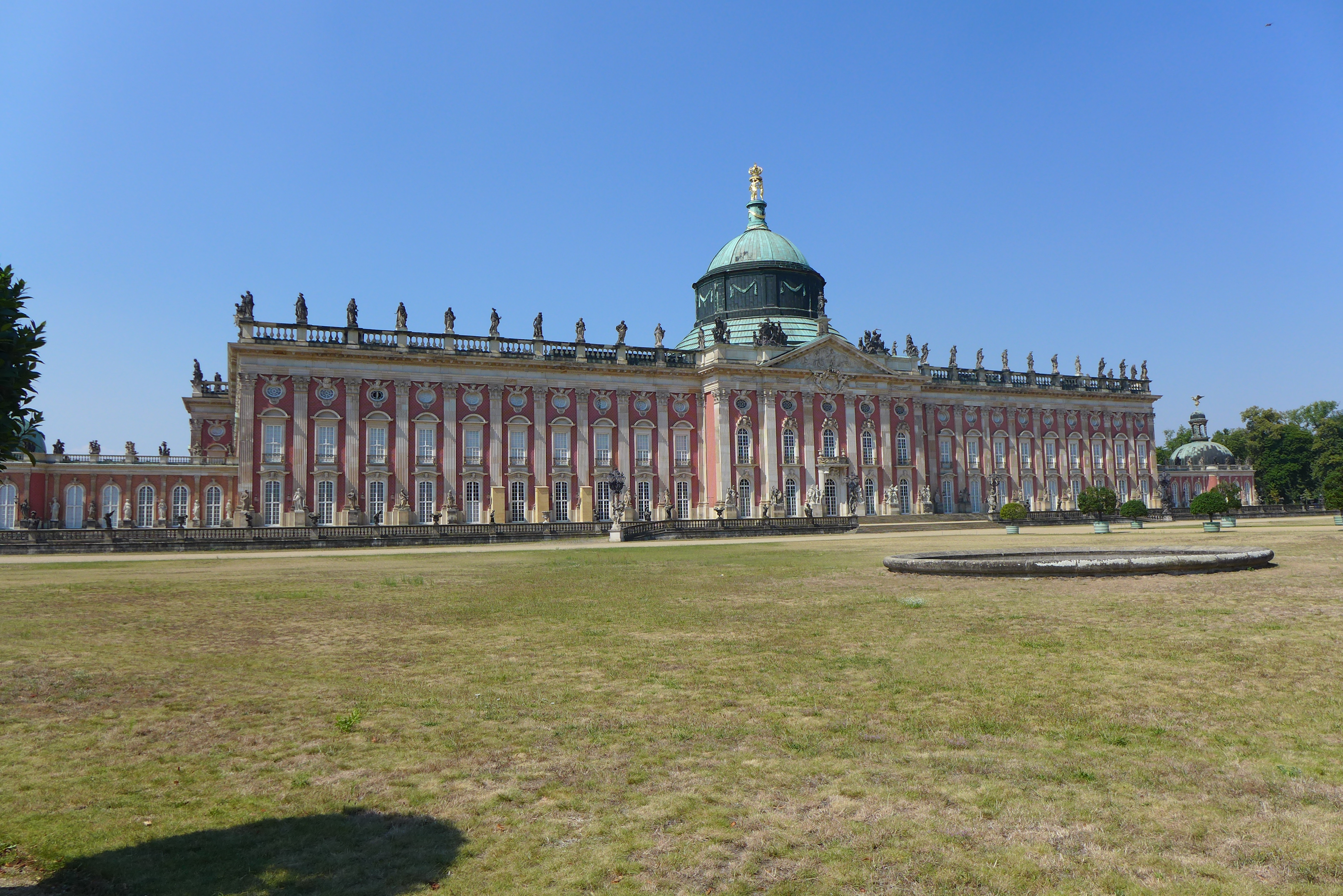 Das Neue Palais ist ein Schloss an der Westseite des Parks. Der Bau wurde zwanzig Jahre nach der Errichtung von Sanssouce 1763 nach Beendigung des Siebenjährigen Krieges unter Friedrich dem Großen begonnen und 1769 fertiggestellt. Friedrich hatte es nicht als königliche Residenz geplant, sondern als Schloss für Gäste seines Hofes. Wenn nicht gerade Verwandschaft oder Staatsbesuche dort übernachteten, wurden staunende Bürger gegen Eintritt in das neue Palais gelassen.