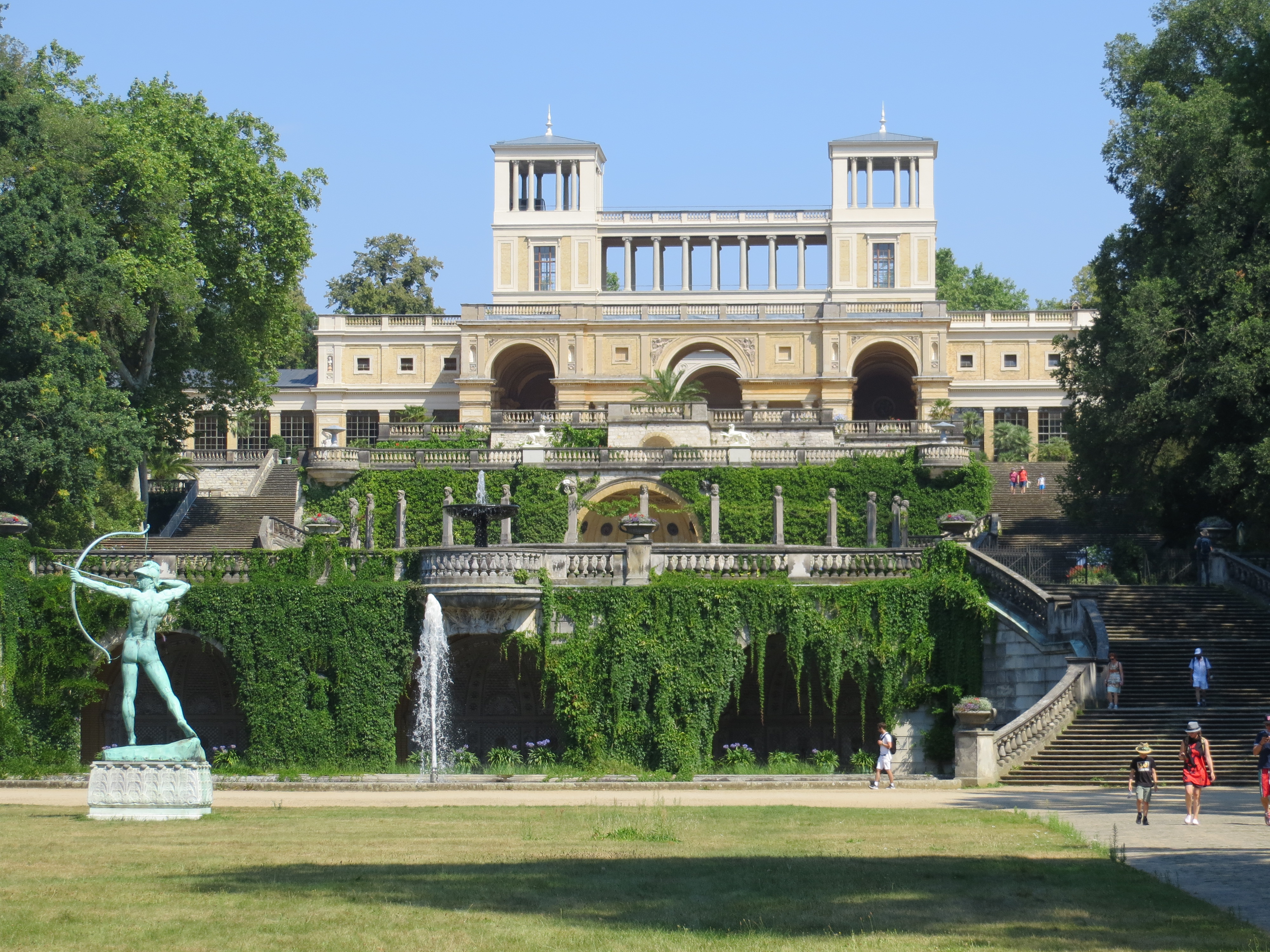 Das Orangerieschloss ließ Friedrich Wilhelm IV. von 1851 bis 1864 am Nordrand des Parks Sanssouci errichten. Nach seinen Skizzen fertigten die Architekten ein Gebäude im Stil der italienischen Renaissance.