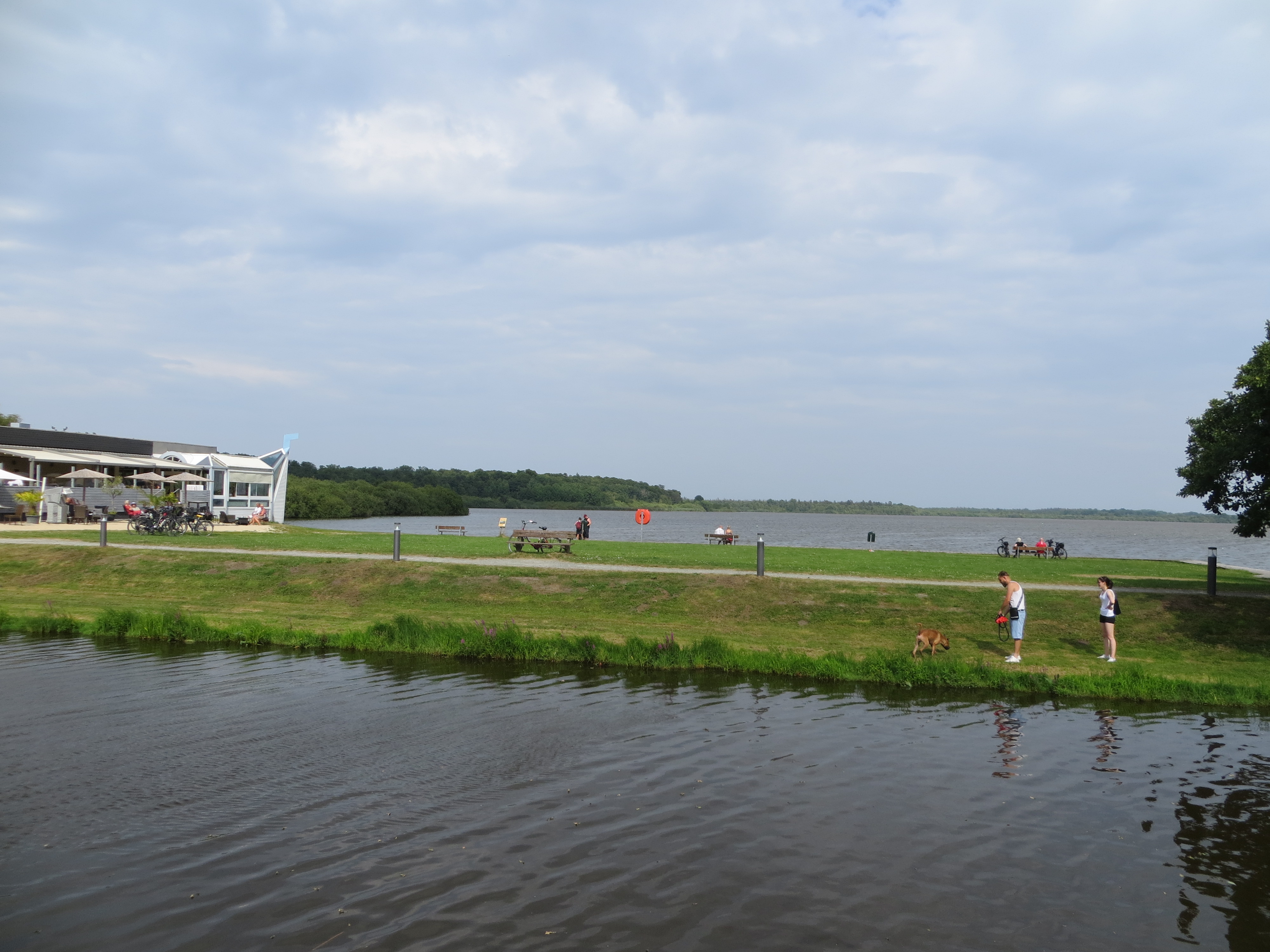 Wir blicken vom Kanal auf den Bederkesa See, in dem man nicht baden darf, weil Naturschutzgebiet.