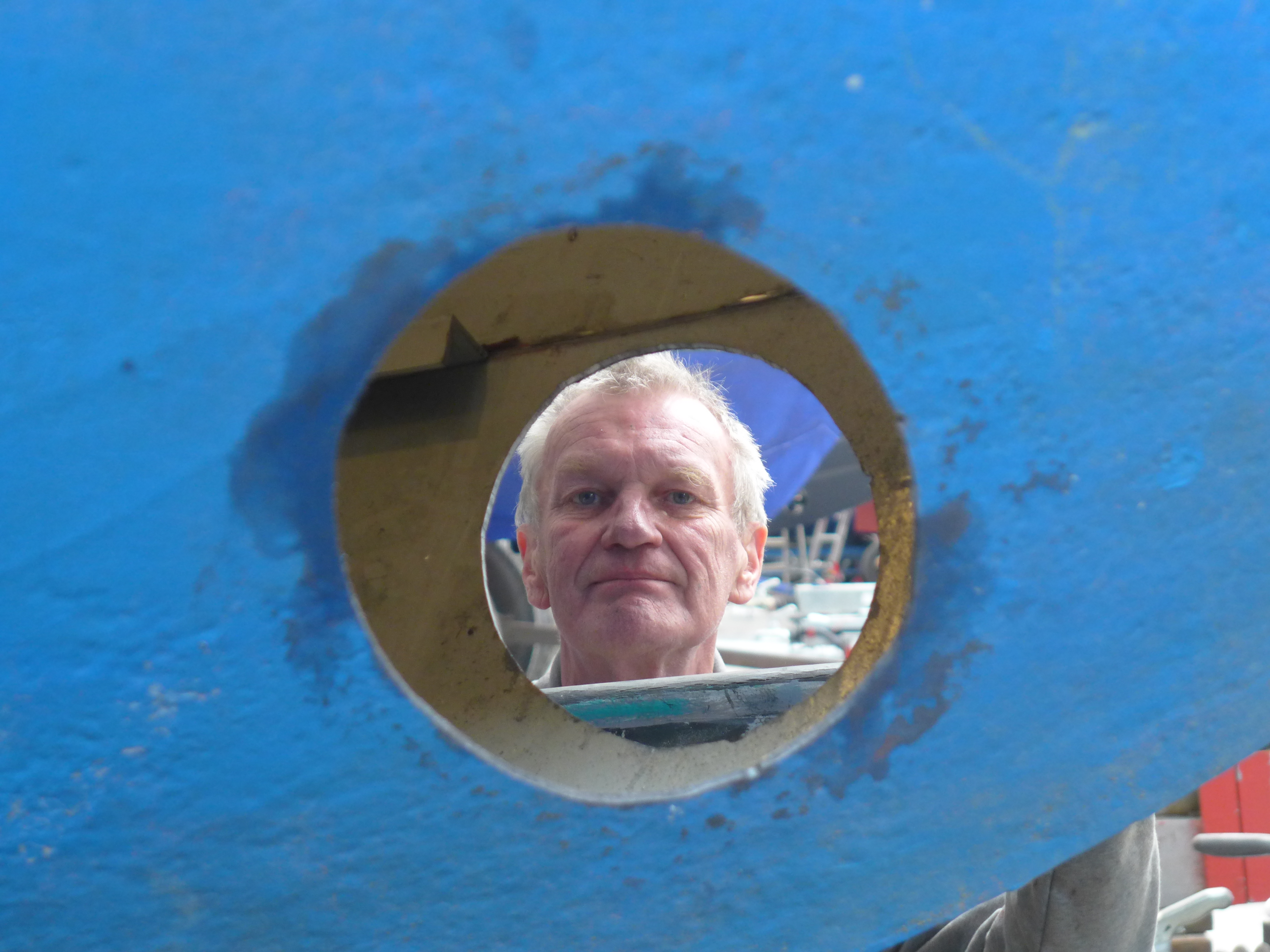 Der Bootsbauer prüft ganz kritisch, ob er tatsächlich den vollen Durchblick hat.