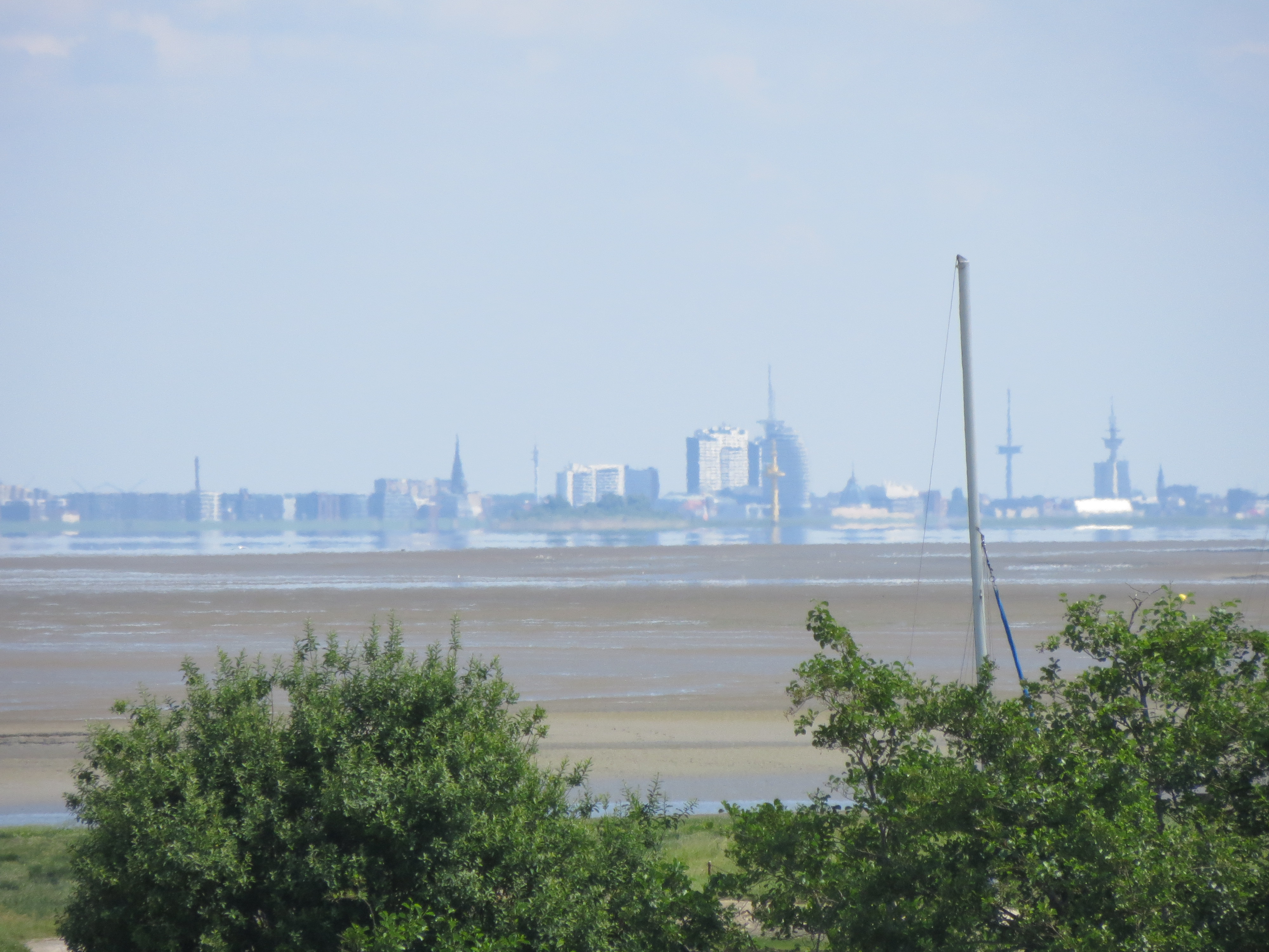 Etwas weiter rechts sehen wir Bremerhaven Mitte mit Columbuscenter, Radarturm und dem Hotel Sail City...