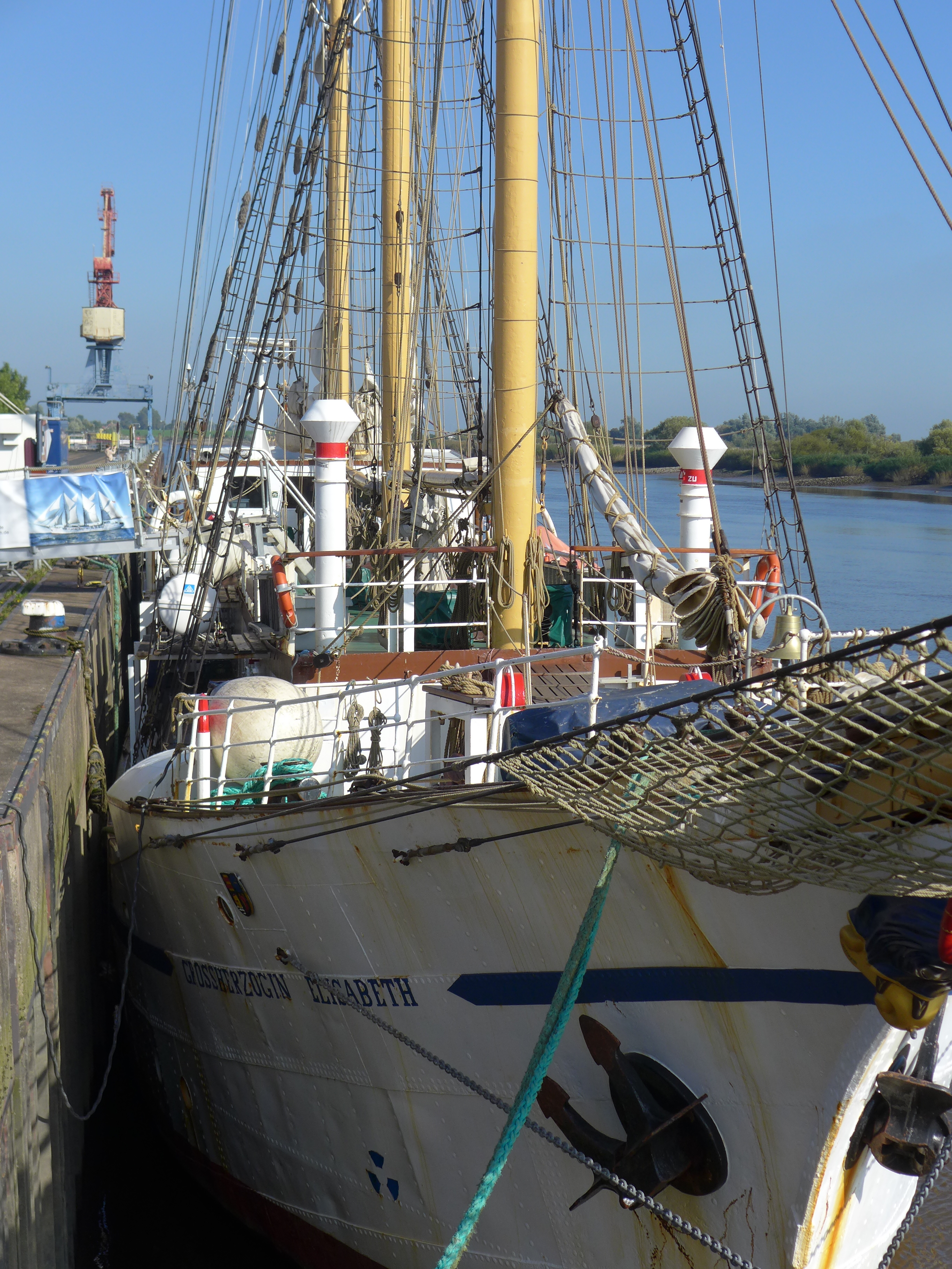 Wir übernachten noch einmal in Elsfleth, denn heute ist es sehr windig, und wir wollen uns das Anlegemanöver in unserem engen Hafen in Hemelingen ersparen.