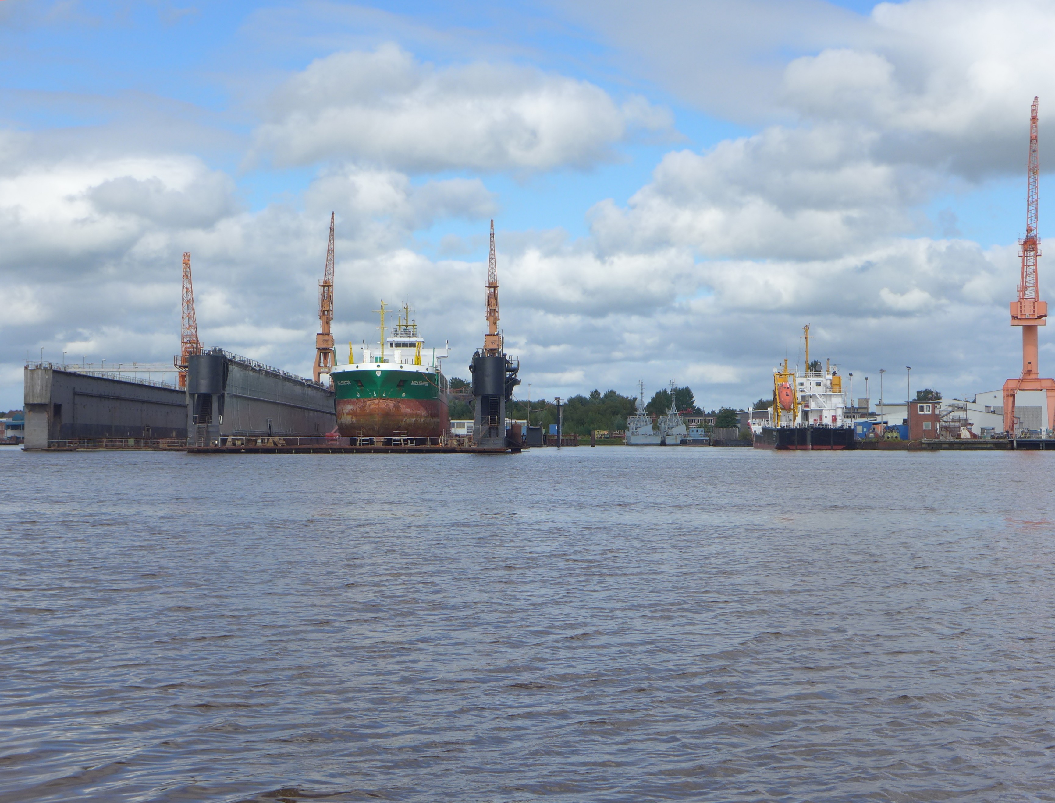 Emden hat neben dem Alten Binnenhafen noch einen ausgedehnten Industriehafen. Dort haben sich Werften angesiedelt, und auch das VW-Werk in Emden verlädt einen Teil seiner Autos in diesem Hafenbereich.