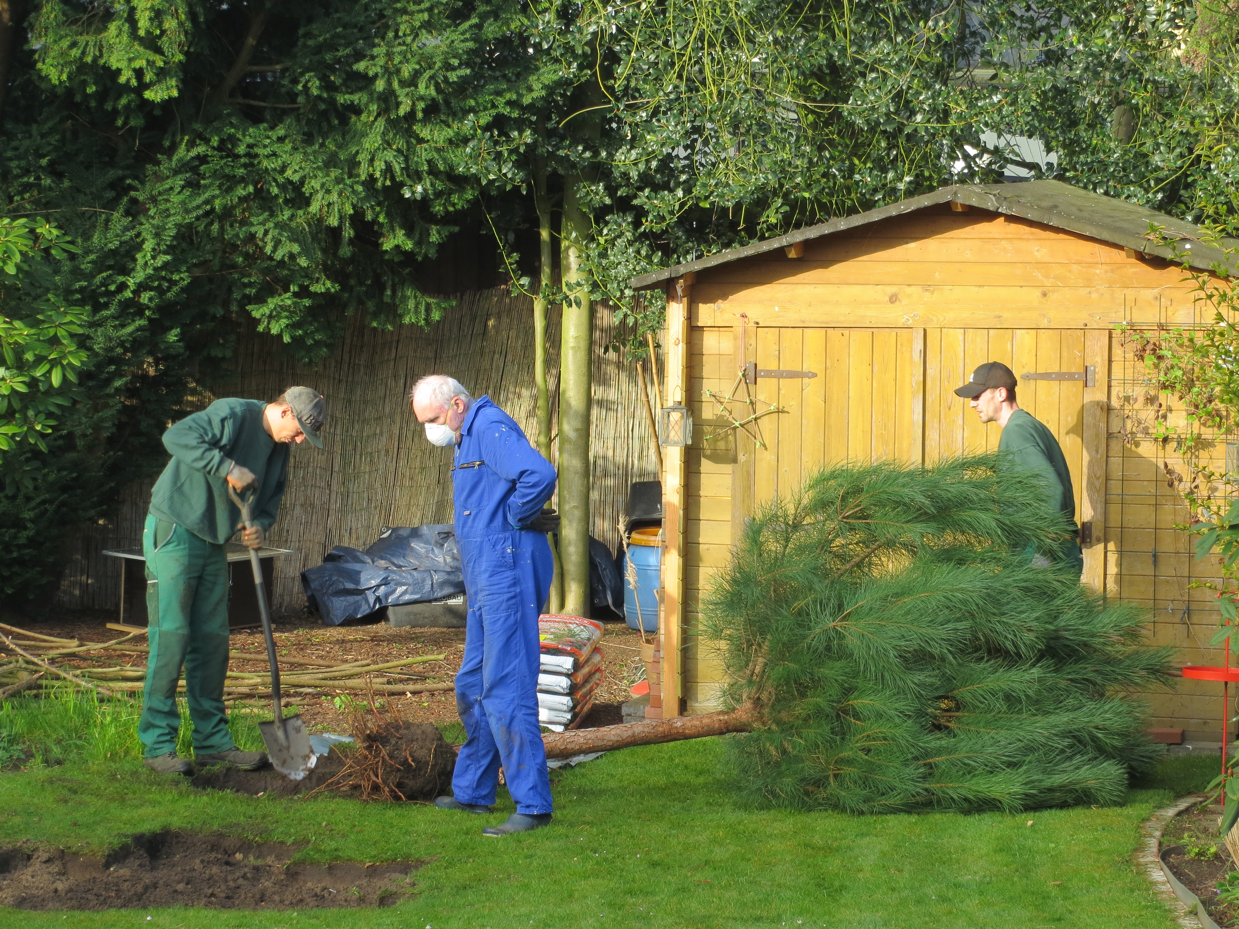 Die Größe der Aushebung im Boden muss noch angepasst werden an den Wurzelballen.