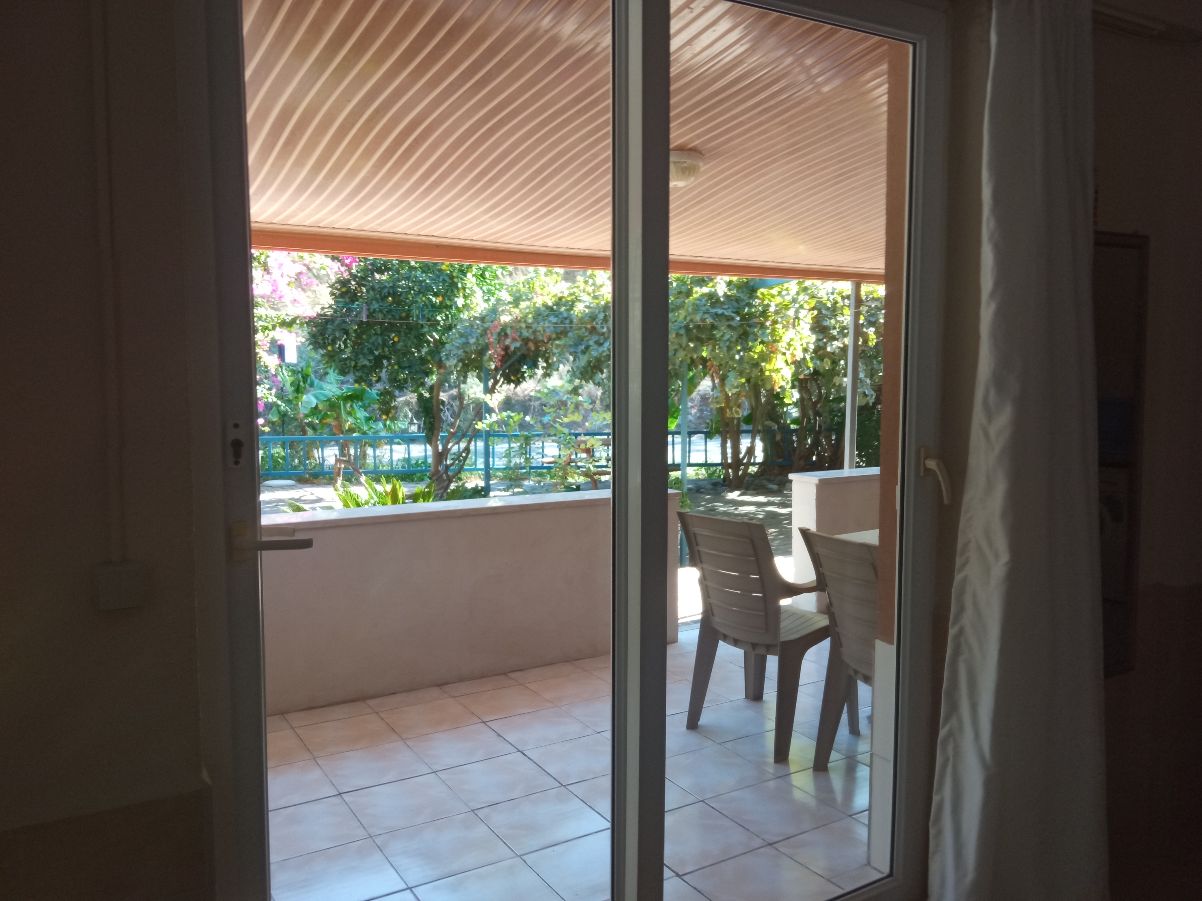 Aber die Terrasse ist groß, und der Blick geht ins Grüne.