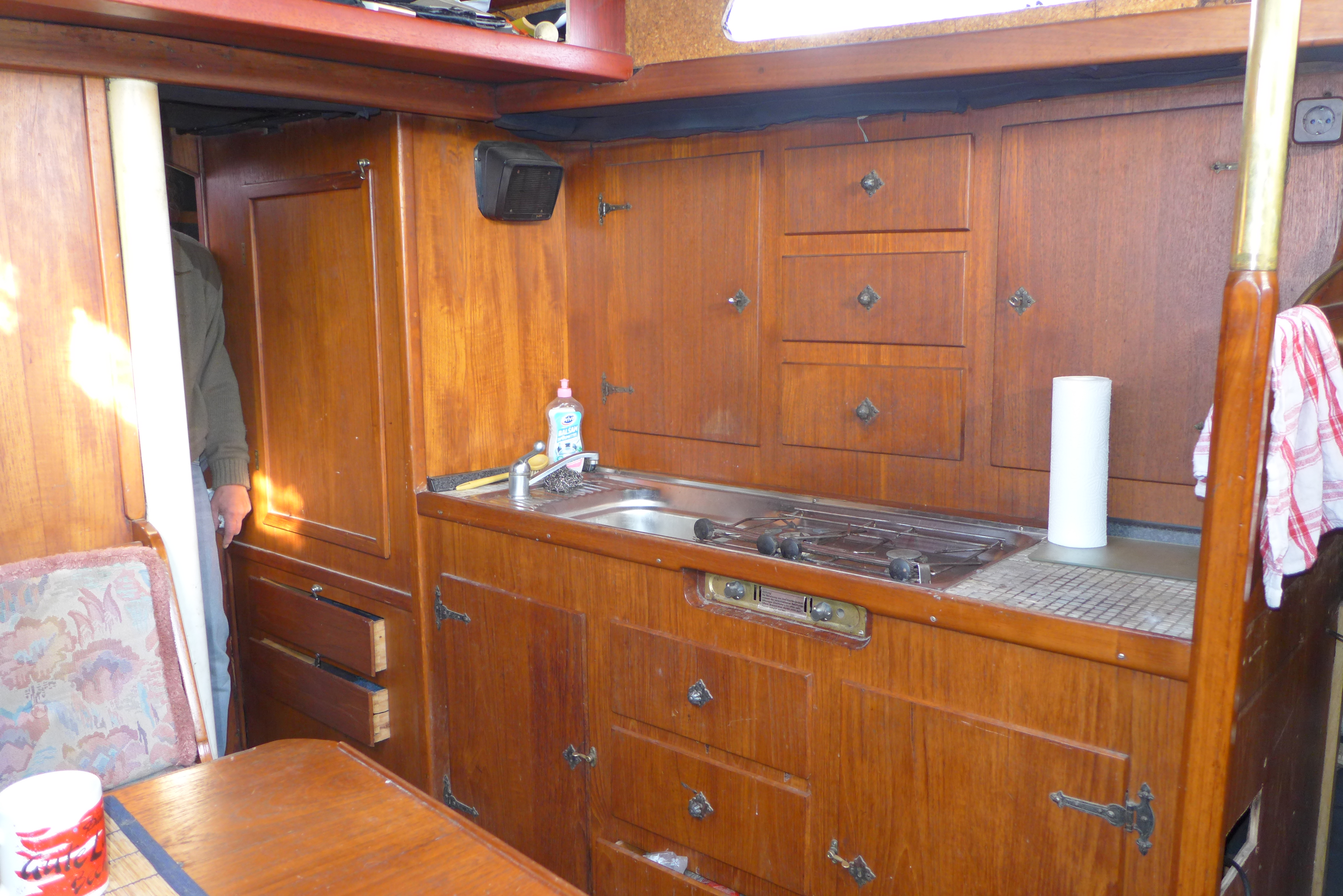 Kombüse mit Spüle, Gasherd und Staumöglichkeiten