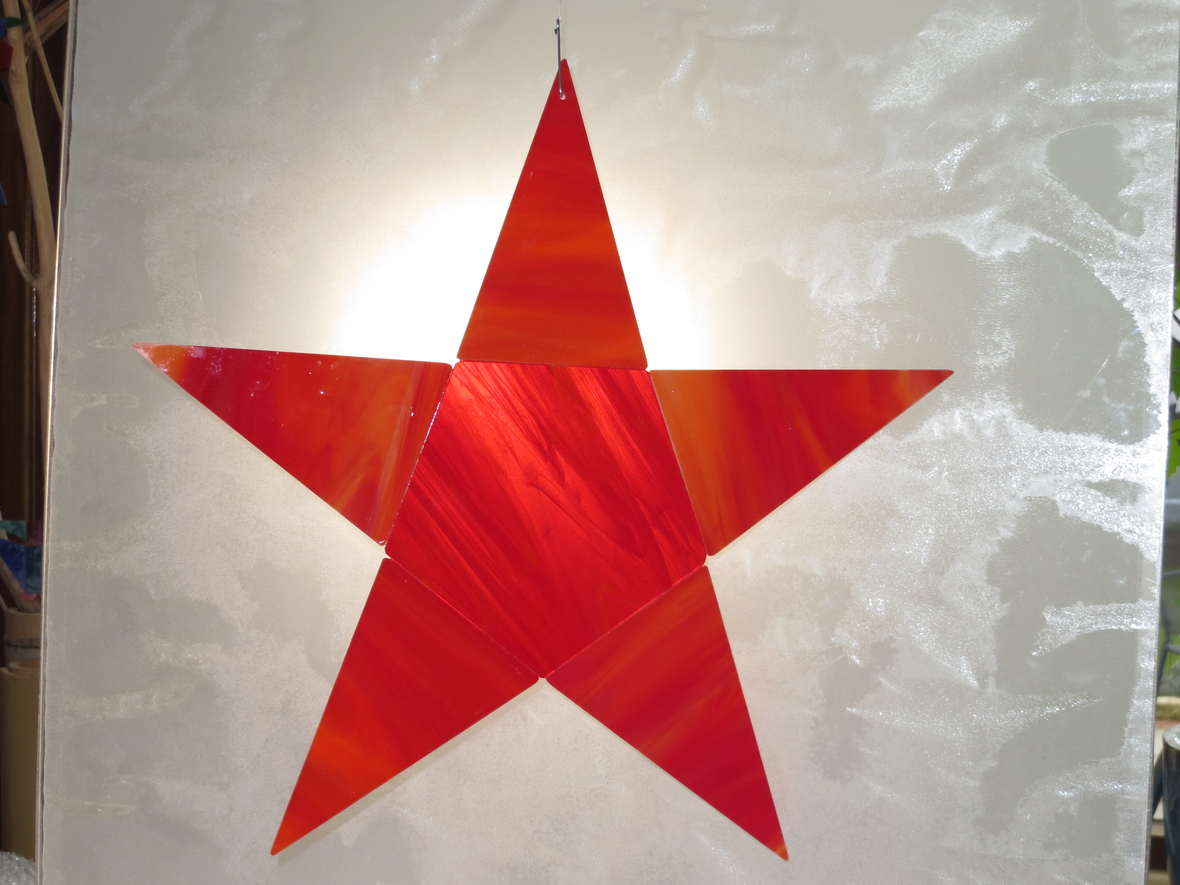Der gleiche Stern (36cm von linker Zackenspitze zu rechter Zackenspitze). Aufnahme mit Licht von hinten und Blitz von vorne.