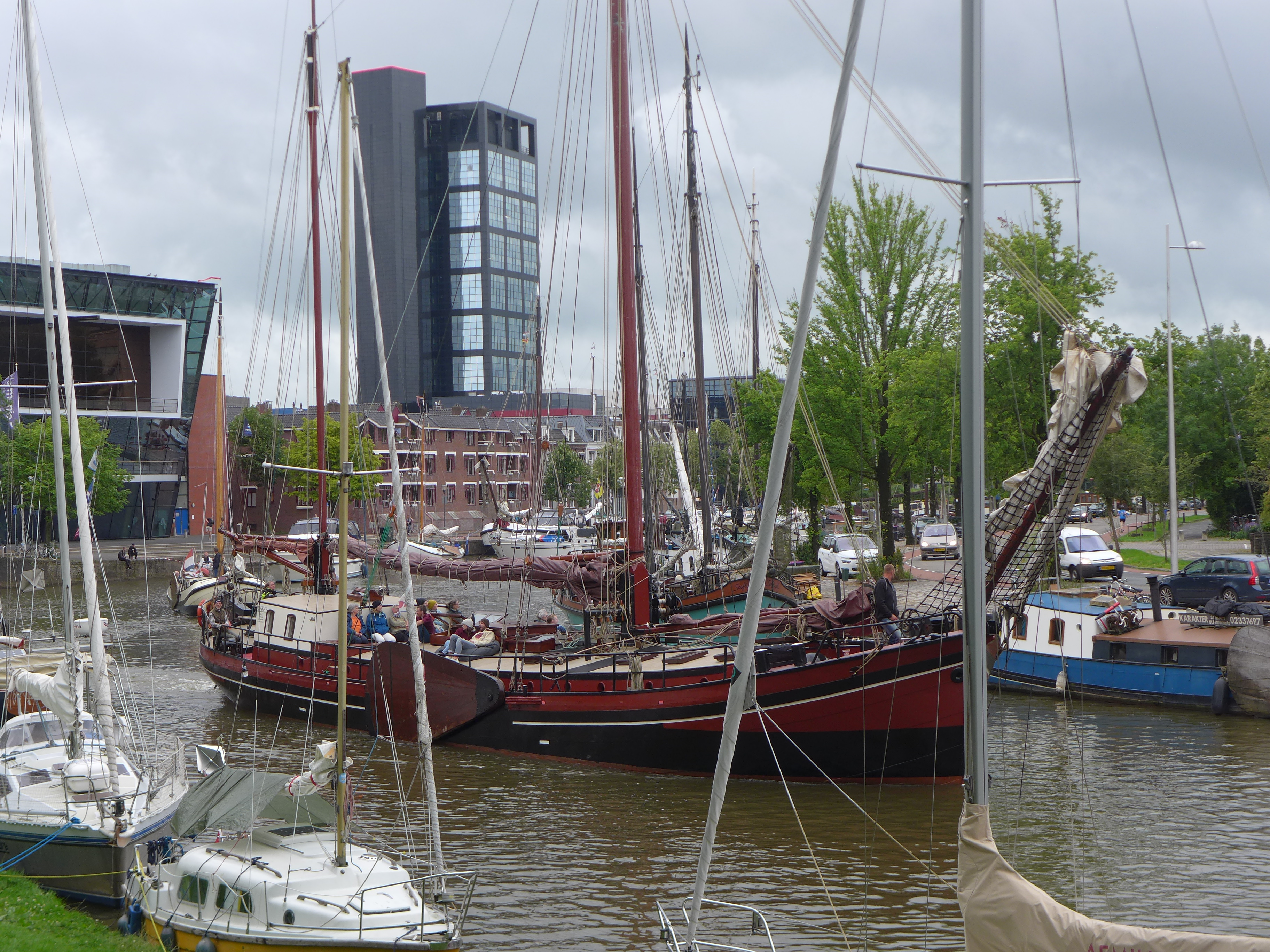 Auf den Kanälen in Leeuwarden ist viel los. Regelmäßig passieren erstaunlich große Plattbodenschiffe.