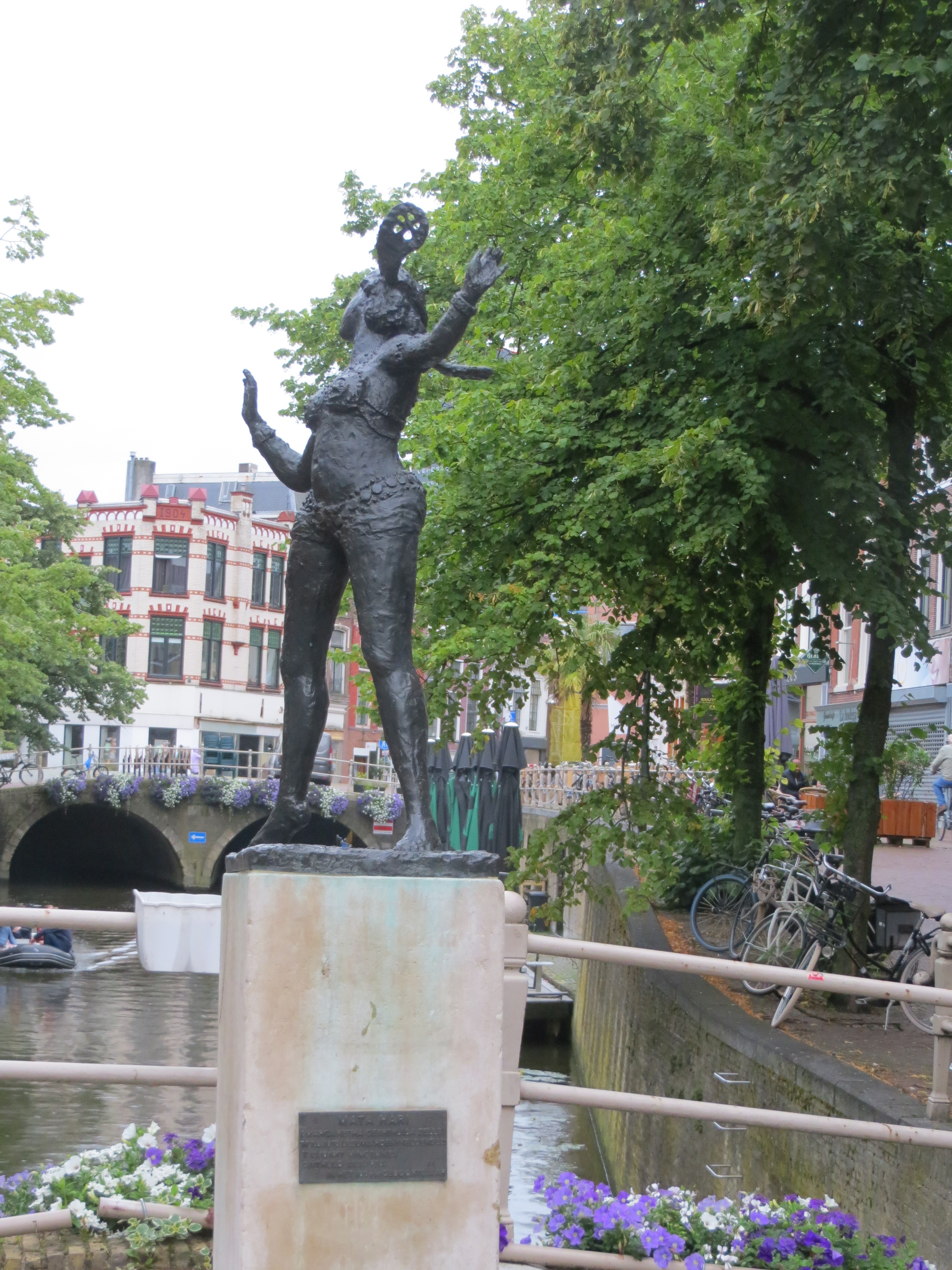 Diese Statue ist der umstrittenen und exzentrischen niederländischen Tänzerin, Künstlerin und angeblichen Doppelagentin Mata Hari gewidmet.