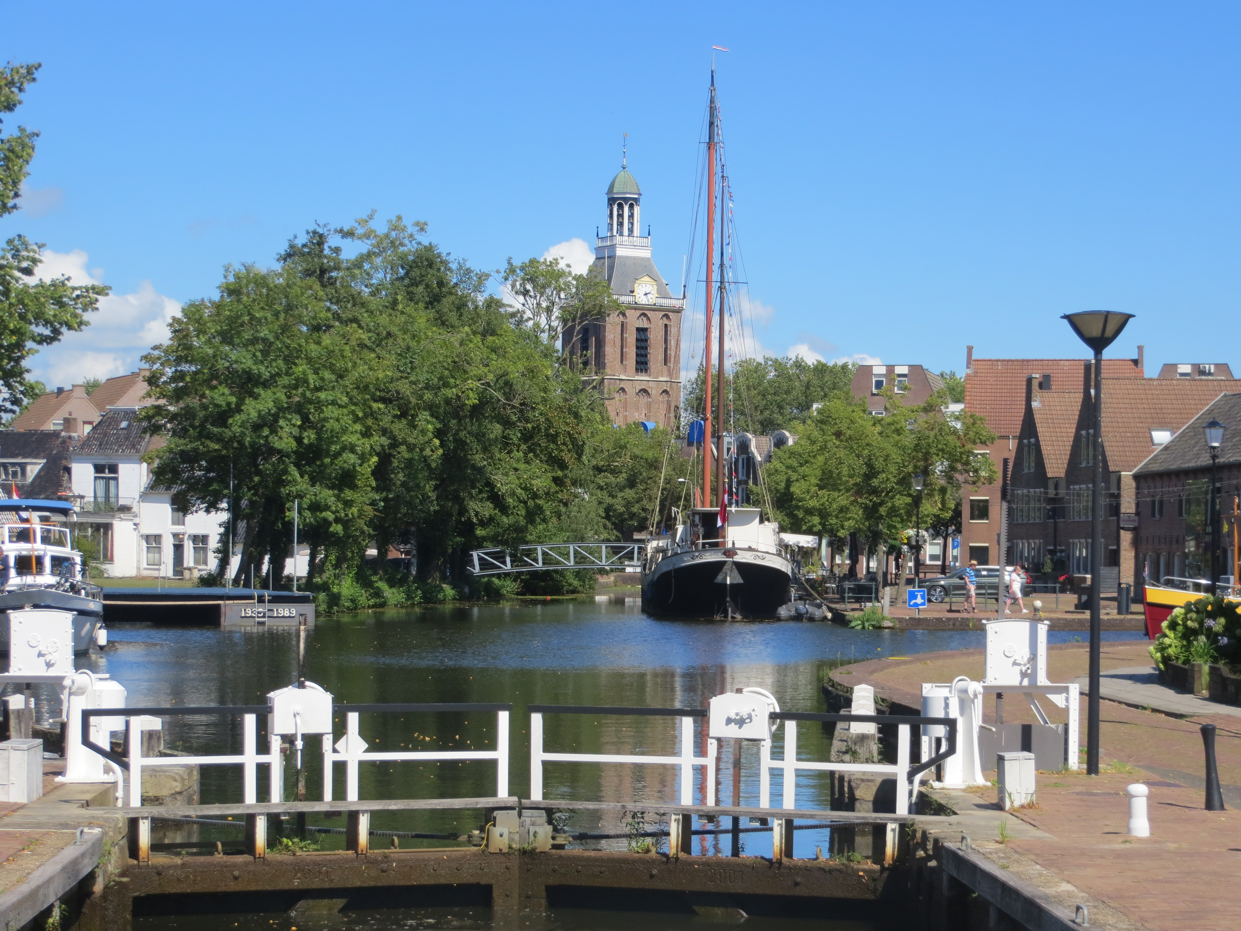 Auch in Meppel konnten wir direkt in der Innenstadt liegen. Hier sind wir noch in der letzten Schleuse.